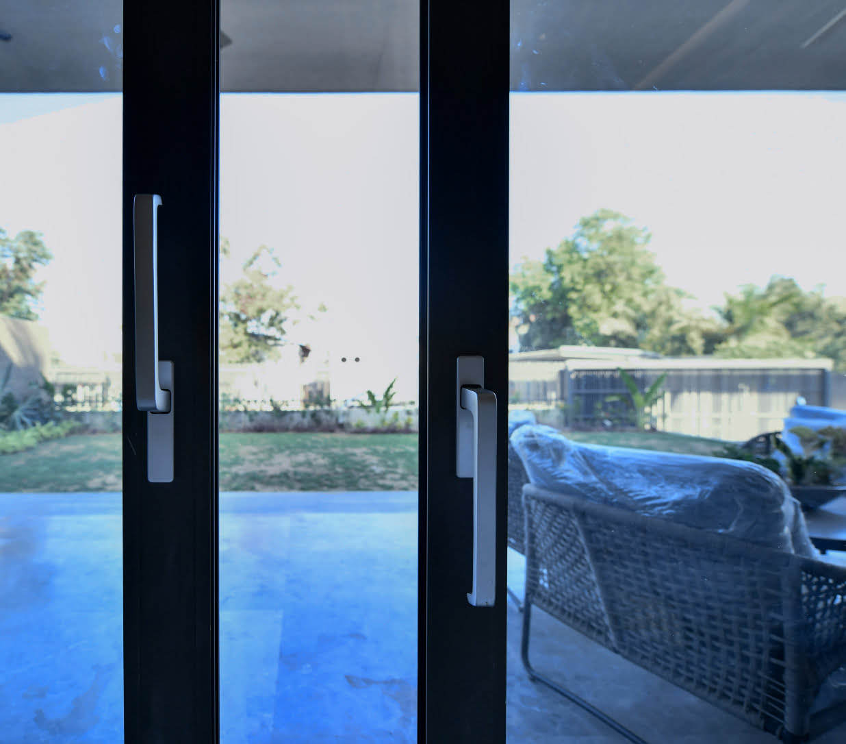 The MINT 108 LS TB door showcases state-of-the-art operating hardware. With just a simple turn of the spacious handle, the secure locking mechanism disengages quietly, allowing for a smooth lift of the door. Subsequently, our lift and slide door sliding technology effortlessly opens the door with the lightest of touches. While the system boasts a thermal break design, there’s also an option available without thermal break, along with the choice of incorporating an in-track mesh.