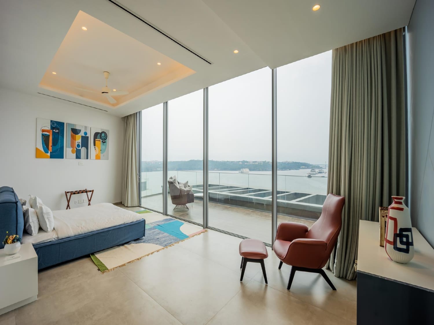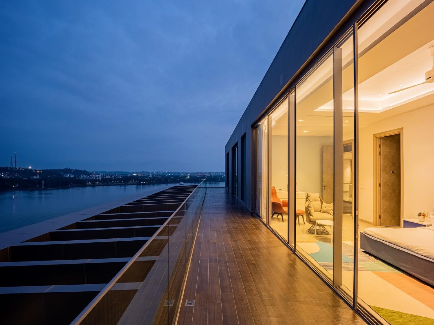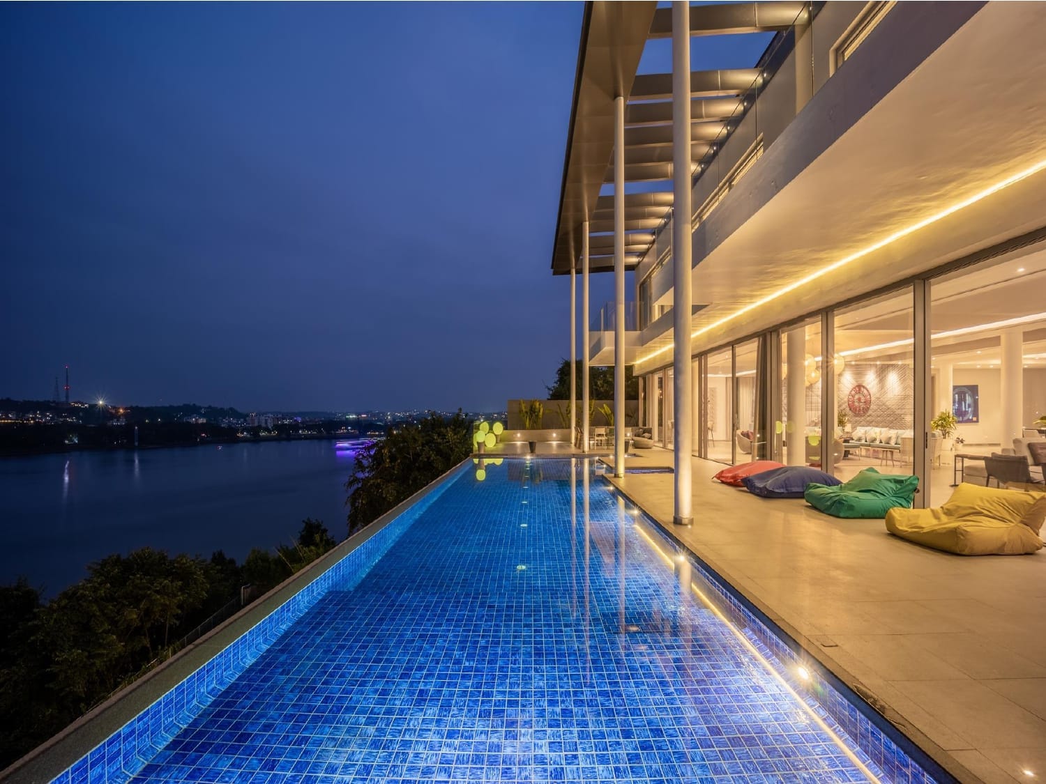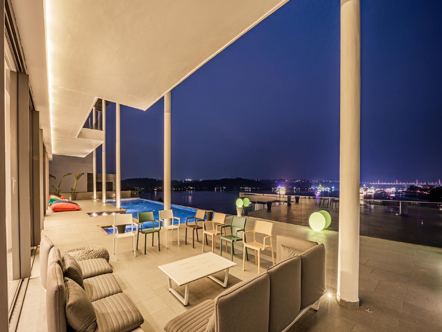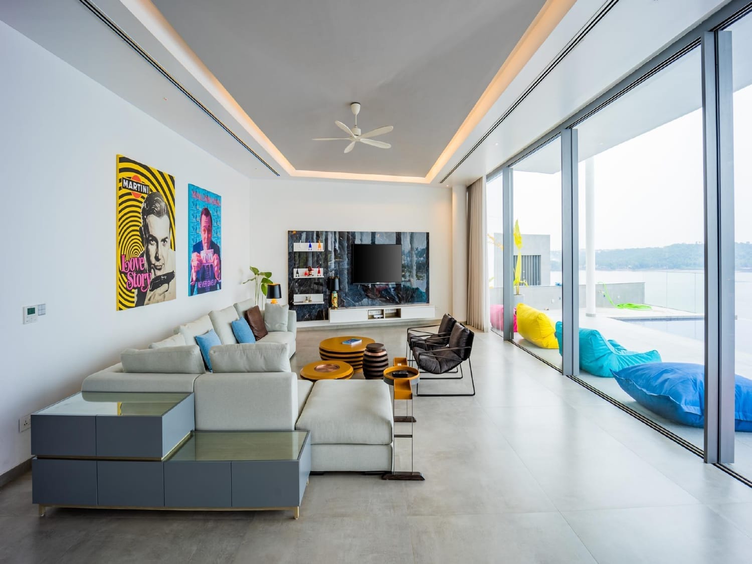 A signature project that seamlessly blends openness, elegance, and leisure. Featuring expansive glass openings across all key elevations, this villa opens out into a large private pool area. Full-height windows and broad facades allow natural light to flood the interiors, while the surrounding glazing ensures unobstructed views of the outdoor space.