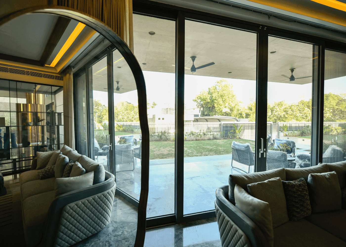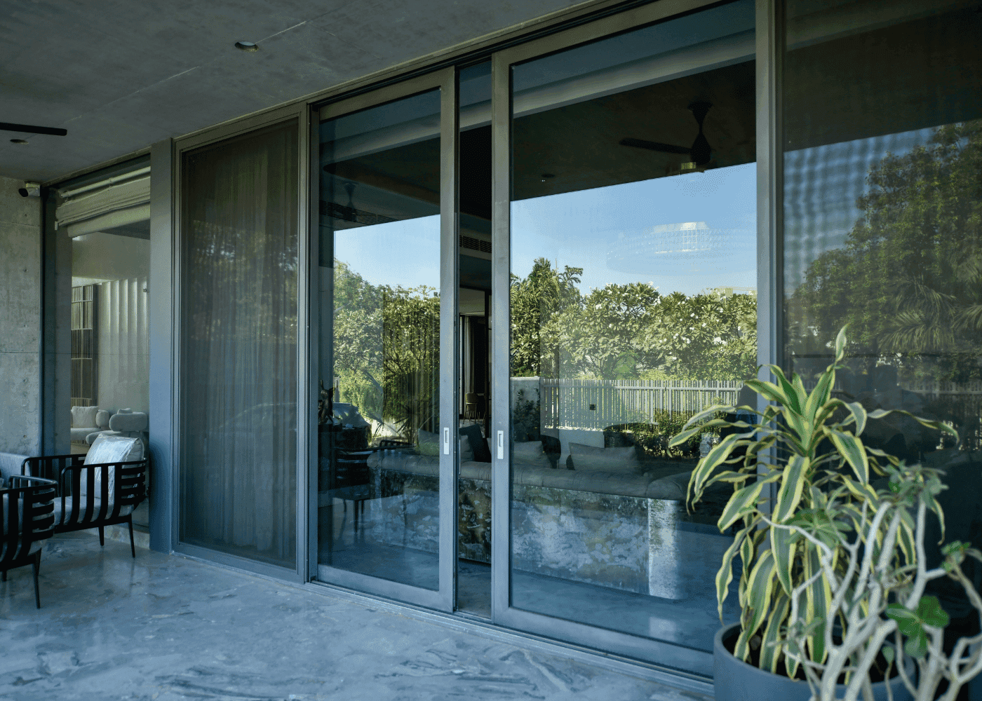 A residence designed with openness in mind. The extensive use of glass maximizes visibility and creates smooth indoor-outdoor transitions, supported by precision-fitted window and door systems.